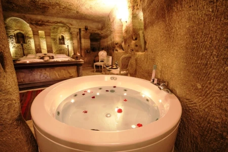 Kapadokya tatilinizi daha özel hale getiren jakuzili oda konaklaması, günün yorgunluğunu atmanızı sağlar. Taş mimarisi ve bölgeye özgü atmosferiyle öne çıkan konaklama deneyimi, tatilinize hem konfor hem de romantik bir dokunuş katar. Özellikle çiftler ve balayı tatili planlayan misafirler tarafından sıkça tercih edilmektedir.